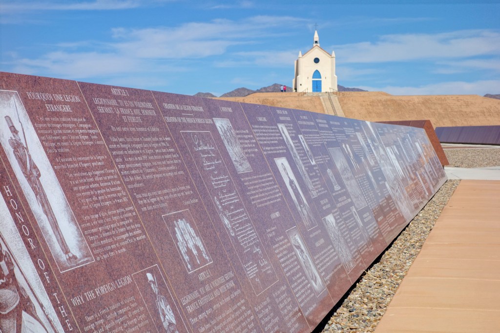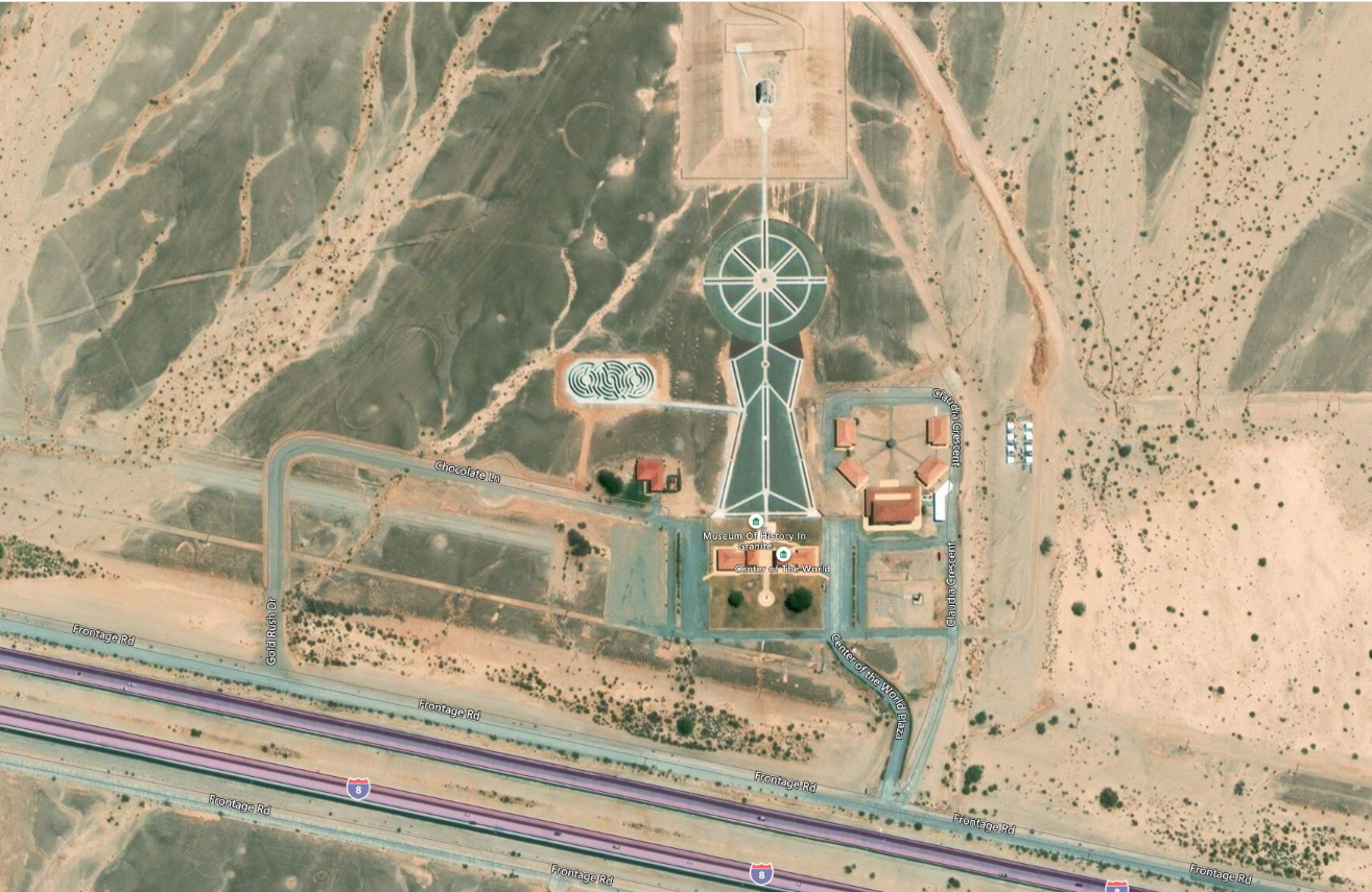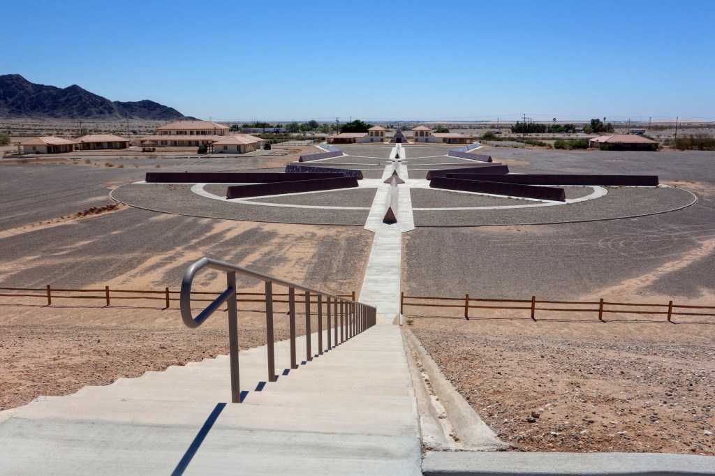 If you think I’m joking, you can look it up. And you’ll learn of Jacque-Andre Istel, Korean War veteran, adventurer, successful businessman, and a man of some charm. He bought the land here, thousands of acres of baking sand, probably for a song, and thought about what to do with it. Inspiration struck, and he persuaded Imperial County to designate a plaque he placed under a pyramid as The Center of the World, then incorporated a town and named it for his wife, Felicia.