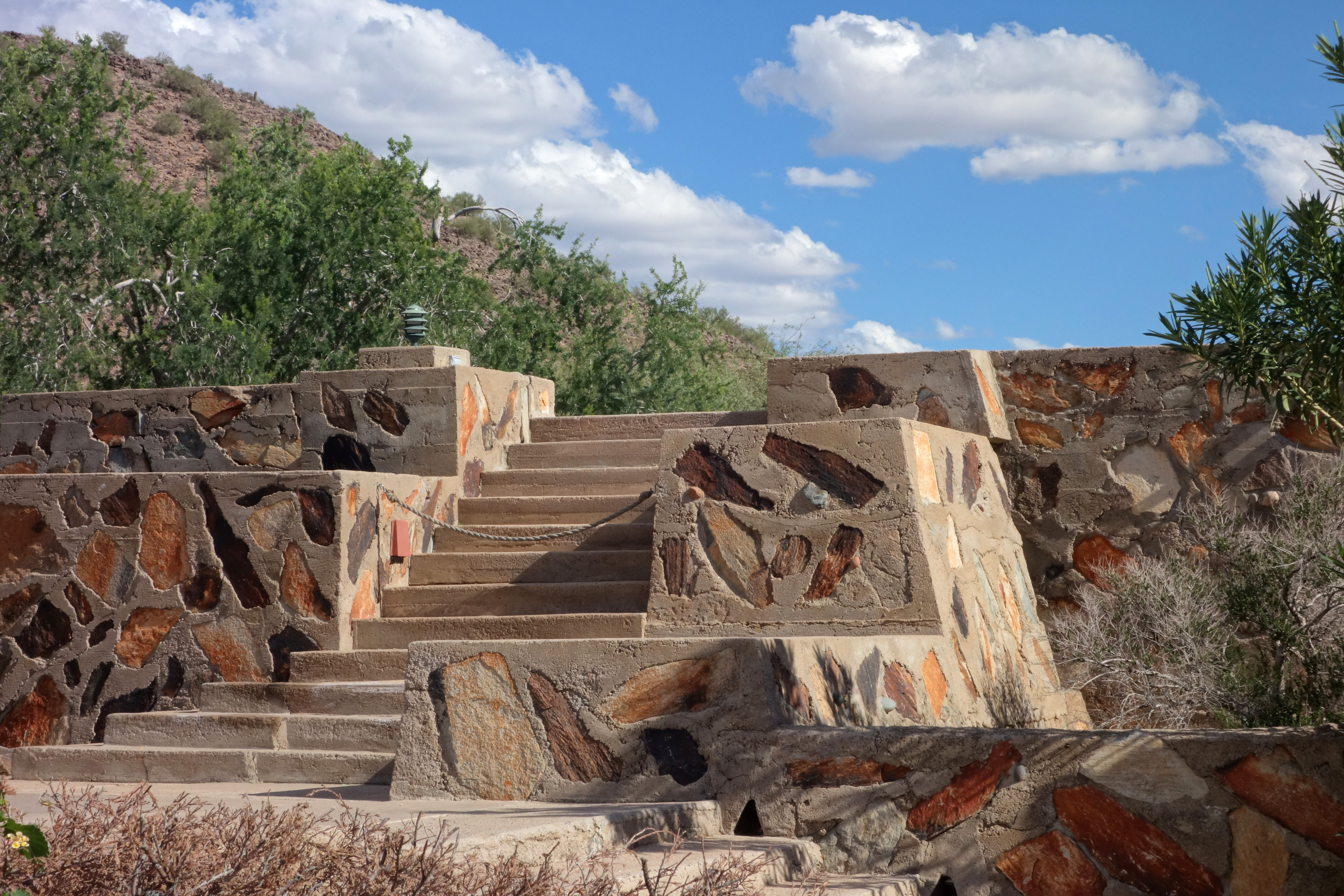 Drive past an unprepossessing sign on a dirt road with the predictable malls and tract homes of Scottsdale in your rearview mirror, and you come upon an almost alien complex, a cluster of horizontal masses and vertical rhythms growing from the desert floor. Made of concrete, local stone, wood, and a touch of glass, the structures are complemented with plantings and petroglyphs taken from the desert. You may have heard the old phrase ‘organic architecture’, but be warned. It can be misleading. These buildings don’t actually look of the desert. They simply belong here. Like the thematic development of compelling music, they are at once surprising and inevitable.