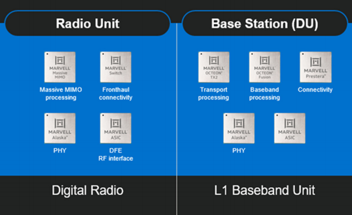 Of course, Ericsson does not sell EMCA silicon to the competition. One commercial alternative is Marvell’s newly-announced Octeon Fusion-O family, which can be programmed for high- and low-PHY, eCPRI, beam-forming, etc., and married with Analog Devices’ transceivers for at least some DFE functions plus AD/DA. They probably cut power consumption by half or better over FPGAs, and in the DU the high-PHY is hosted by the accelerator rather than the server’s processor, so the data path should be simpler — less churn through memory.